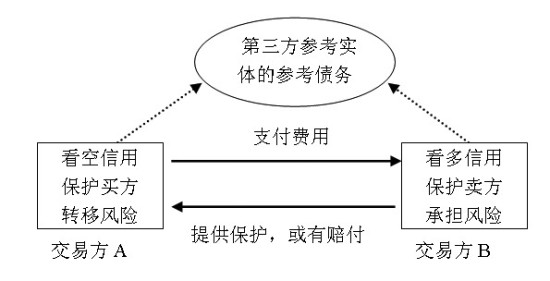 参与信用衍生合约交易的双方将参考实体的信用风险从交易一方转移到另一方。其中,转移信用风险的一方做空参考实体的信用,认为其信用风险会上升,并通过向对手方支付一定的费用来获得保护,因而也被称为保护的买方;承担信用风险的一方则相反,做多参考实体的信用,认为其信用风险会下降,获得对手方支付的费用,并当参考实体发生“信用事件”时向对手方支付其相应损失,因而也被称为保护的卖方。这里,信用事件是指与金融交易相关的法律文件规定的与违约相关的事件,如ISDA对信用衍生品定义的标准文件(2003版)中,信用事件包括破产、债务加速到期、债务违约、支付违约、债务拒付或延缓支付和重组等。
