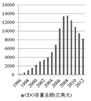 在经历了前期的起步发展和快速发展之后,信用衍生品市场在2007年达到了顶峰。依据BIS的估计,CDS在2007年的名义总额近60万亿美元,远大于同期的股票市场总值(约为36万亿美元)。但随着次贷危机的爆发,全球信用衍生品市场开始进入了收缩和调整阶段。截止到2012年6月,CDS的名义总额只有近27万亿美元,不到2007年的一半;CDO的存量也出现大幅下滑。