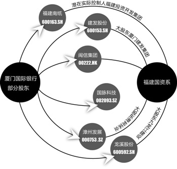 据记者了解,目前厦门国际银行股东中包括有福建南纸(600163.SH)(潜在实际控制人福建投资开发集团)、建发股份(600153.SH)(大股东厦门建发集团)、漳州发展(000753.SZ)(大股东漳龙实业)、龙溪股份(600592.SH)(大股东九龙江建设)、闽信集团以及作为民企的国脉科技。