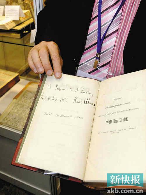 ■2010年12月3日,澳大利亚史达书店的保罗·飞恩先生正在展示1867年首版马克思著作《资本论》(第一卷),并有马克思的亲笔签字,该版仅印刷1000本,非常罕见,估价约425万港元。新华社发