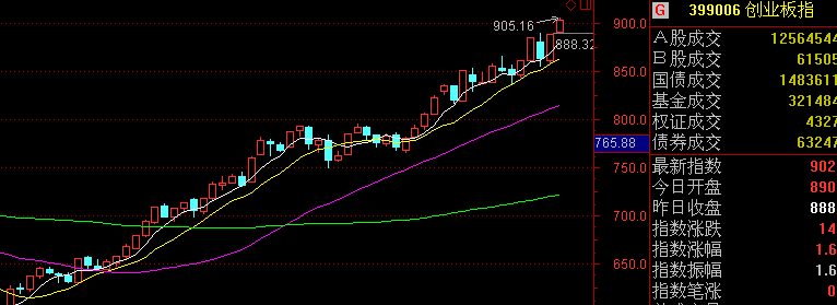 由以上三张截图可以看出目前市场大盘调整时,中小板和创业板指数创出新高,也预示着资金的主攻方向,也已转为中小板和创业板这类小指数。同时标志着以蓝筹为主导的指数行情告一段落,未来的行情将会是主题性的投资机会。