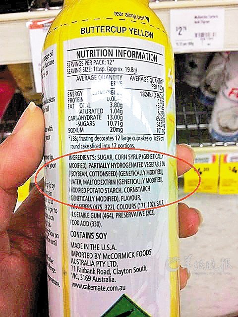 做蛋糕用的调色粉因有转基因成分,因此要标注出来