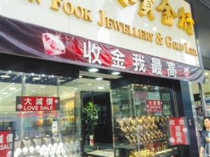 “以旧换新”不难,但真正将黄金变成现金可不容易。记者发现,在深圳能够真正将黄金变现的只有周大福一家。华强北茂业百货内周大福店铺经理告诉记者,深圳周大福每家门店都能“以旧换新”,但至少按照10:13的比例来换,即拿着10克旧金,至少要换取13克新金,旧金折价之外的部分需要顾客再加钱。
