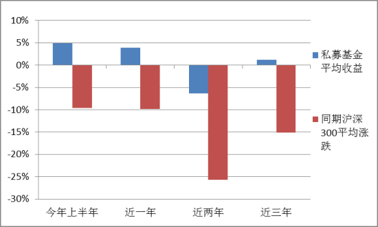 图表9:短、中、长期私募基金(传统策略管理型)与同期沪深300涨跌对比 |