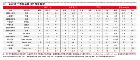 目前,市场上对年内削减QE3规模的预期依然强烈。根据7月下旬《证券市场周刊》对国内外近40家机构的调查,86%的机构认为QE3规模会在年内削减;其中,50%的机构认为美联储会在12月行动;36%的机构认为美联储在9月就会拉开QE3退出的序幕;只有14%的机构认为美联储要到2014年才会采取行动。