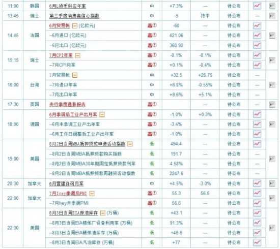 上图是日内待公布消息面。消息面上,昨日美联储理事埃文斯讲话谈到美联储可能在9月放缓QE,虽然是老调重弹,但是我们依然不可小觑他的讲话,他依然在强调美联储放缓QE,说明美联储内部依然对于9月放缓QE有一定的预期。而黄金ETF方面,近期依然维持减仓,今日早间继续减仓2.10吨。而在本月之内,已经是第四次减仓。从机构趋势上来看,ETF依然不看好黄金在近期强势反弹,而且假如ETF定义黄金为底部震荡,那ETF应该选择不动仓位或者低位吸筹的做法,但是ETF依然选择减仓,这一点值得我们去推敲。
