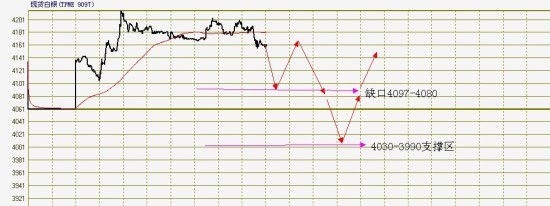 现货白银:白银价格白盘出现冲高后高位震荡走势,早盘银价出现高开高走势头,留下了久违的“窗口”(17个点),由于窗口的出现对盘中支撑作用较强,银价经过短暂的休息后开始了继续上涨之路,一路上翻越盘中较为重要的4150附近的压力位,进过及时的消化后,银价继续上行。银价的涨势终结于4220-4275非常重要的阻力区,此区间的压力意义重大,不会非常容易被多方所攻克。银价随后出现高位震荡走势,且白盘大部分时间都在消化4220-4275区间的压力。对于晚盘走势而言,银价仍会以震荡调整走势为主,投资者要关注几点:1、今日出现的“窗口“(17个点),由于窗口的出现对银价走势具有较强的支撑意义,所以对后市银价走势影响极大,若此区间失守,意味着此次上涨势头的终结,后市银价出现调整幅度会逐渐加大,调整时间会逐渐延长。2、4030-3990区间是前期重要的密集成交区,同时也是前期高点区域,由于上一个交易日成功突破后,此次若回调至此区间时具有较强的支撑作用,后市具体较强反弹动能,所以投资者一定对此区间格外重视。3、由于近几天出现较大幅度上涨,盘中开始出现弱势迹象的前兆,此种走势特征正在弥漫在银价调整趋势当中,虽是盘中细微变化,但是值得投资者关注。