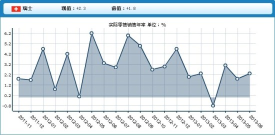 瑞士6月实际零售销售年率上升2.3%,优于预期