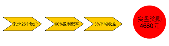 一、目前操盘连连看赛区还剩余可开启账户为26个,即使忽略9连赢以上的奖励翻倍,假设选手以60%的胜率每个盈利账户收益3%计算,如果选手在剩余赛程中全部参赛,可获得近5000元的实盘奖励!