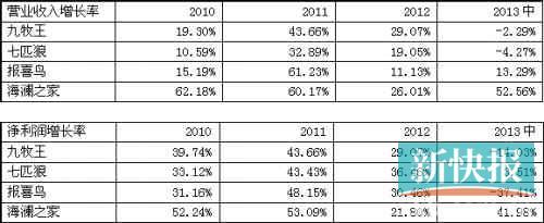 男装上市公司业绩增速对比