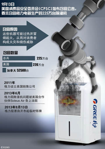 珠海格力集团有限公司(以下简称“格力”)近期的一则公告显示,其将从美国和加拿大市场召回约225万台除湿机产品。