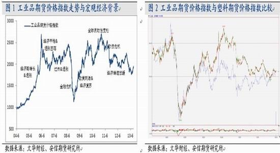 通过图1可以看出,工业品期货价格在主趋势上基本都对应着特定的宏观经济背景。通过图2(点线图为塑料期价指数)可以看出,塑料期货价格与整体工业品期货价格的运行在主趋势上保持较好的一致性。这种一致性的逻辑基本可以剔除某单一工业品(例如塑料)的产业面影响因素。另外,图2也给我们另外一个信息,即在次级趋势的运行上,塑料期货价格的运行有着自己的特点,即产业面矛盾升级而催生的独立的阶段性行情。