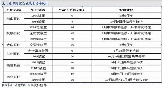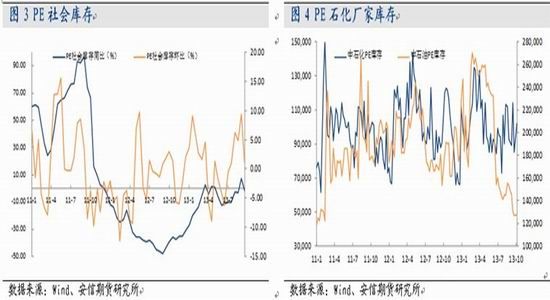 塑料价格另外一个强支撑是PE库存水平。同比来看,目前PE社会库存水平处于近几年的低位。七八月份,由于下游对原料高价格的抵触以及部分检修装置的开工,PE在产销上产生了一定阻碍,于是其库存水平出现阶段性上升。不过,近期PE库存又出现了回落的苗头。据中塑资讯最新报告显示,截止9月30日,国内PE库存较8月底增加1.02%,比上一年同期减少1.44%。石化厂家库存方面,中石化和中石油目前PE库存在23万吨左右,较七八月份有一定幅度的回落。库存回落的原因有二:检修装置的开工不及预期及旺季里下游刚需的释放。后市来看,PE库存水平仍处于低位,并将继续为塑料价格提供支撑。