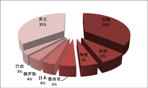图2.3:2011年全球主要鸡蛋生产国产量占比