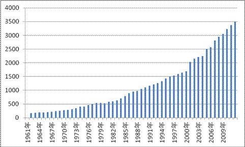 图2.5:印度鸡蛋产量变化趋势,1961-2010(单位:千吨)