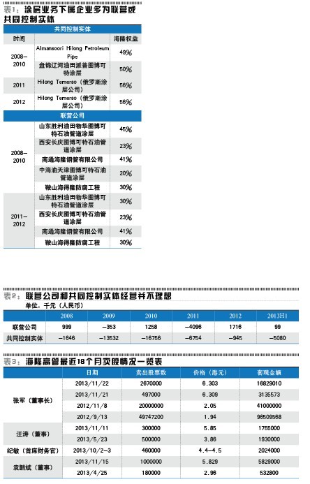 海隆的涂层服务有接近一半的下属公司是联营公司或者共同控制实体(见表1)。而公司的共同控制实体在过去几年中连续亏损,联营公司在最好的一年也只有100多万元人民币的利润。为什么一方面海隆持有部分股权的联营公司如此微利甚至亏损,而另一方面海隆上市公司却享有如此高额的利润?