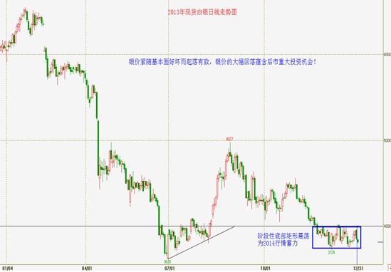 汇金网12月31日讯——2013即将过去,在过去的一年里,现货白银紧随全球经济发展趋向和重大政经事件的好坏而起落有致,其走势就像一支起落有致节奏感超强的乐章。随着乐章节奏起舞的投资者朋友们,也相应得到了丰硕的投资回报。