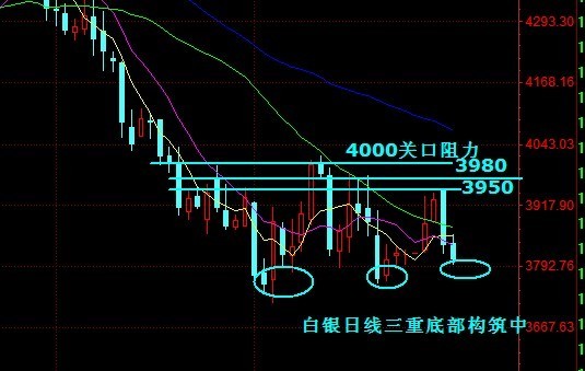 【白银的分析】:白银近期的表现一直很好,3800下方的多单,虽然中线减仓,但中途又下来,再一次给了补仓机会,而对于近期的白银的走势,本人也是比较看好在3720-3800一线筑底的,筑底的次数越多,也就意味着底部越可靠。技术面上看,日线有3度回测3800-3780的迹象,目前这一线的支撑非常关键,如果有效破位了,那下方的空间也会打开,虽然本人不是很愿意看到,但是,这样的下跌空间有多少,目前还不好说,如果破位,下方本人预测最多也就是3730,而会不会有强力度的反弹,这个都是不得而知的,而根据前面2个低点的连线形成的支撑,这次的回调点差不多就是3800这里了,而日线上看,上方的关键阻力依旧是3960-4000关口之间,尤其是4000关口,如果破位并且站稳,上方的空间将会非常大,由三重底加上关键点破位,力度会非常强,而对于近期的行情,本人则预测在3780-3960之间了,围绕这个区间做单即可。临近月末,难有大的行情出来,而对于下方3800附近和下方的多单,本人建议继续持有,近期或者下个月如果出现上破关键点4000,那么可以顺势追多。