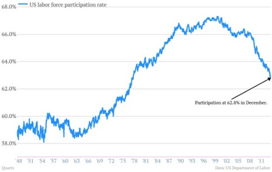 但新增就业数字少,其实并不是大家最担心的,因为12月适逢节假日较多,而且之后也不排除大幅上修的可能性。市场最担心的其实是:劳动参与率再次下跌至62.8%,创1978年以来新低。这或许意味着很多人不是找不到工作,而是压根放弃找工作了。