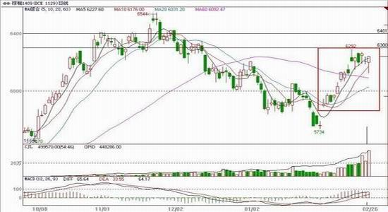 棕榈油主力1409合约在油脂三个品种走势最强,下方均线存在支撑,后市存在上行空间,预期在马盘带动下继续偏强运行,上方关注6450-6550元/吨一带压力。