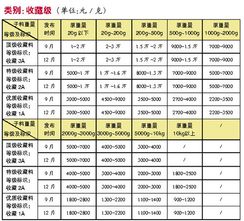 而对于和田玉白玉籽料的价格标准,马国钦特别谈到在媒体上经常出现的“一克和田玉籽料达两三万元”的表述。他认为,这样笼统的说法有误导性,甚至是愚弄公众,非常不负责任。“其实,‘一克两三万元’特指的是籽料原重量大小在20克~200克之间的顶级收藏籽料,直接可当最好的把玩件,所以价格最高。有些媒体将这一前提弃之不顾,把‘一克两三万元’套在任何大小的和田玉籽料上,甚至个别有不良用意之人把山料也用籽料的价格套算,结果谬之千里。比如5公斤、10公斤重的特级收藏料远远达不到这么高的单价,通常是一克几千元,与20克~200克的顶级收藏料单价相差很多倍。而20克以下的和田玉籽料由于重量轻、体积小,难以加工成把玩件或佩戴饰物,也会影响其价值。我们是根据市场的实际交易规律来发布每一季度的参考价格的,不可能一刀切。目前,和田玉(白玉)籽料交易行情价格根据市场情况,按原重量可划分为20克以下、20克~200克、200克~500克、500克~1公斤、1公斤~2公斤、2公斤~5公斤、5公斤~10公斤,乃至10公斤以上的不同价格区间,非常贴近市场正常交易,具有很强的实用性,已对全国的和田玉市场起到了非常好的指导作用。”