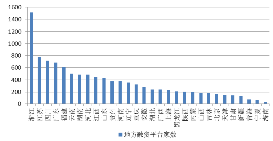 图2 2012年末全国各省市自治区地方融资平台数量分布(单位:家)