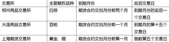 股指期权因其标的物为现货,最后交易日的概念并无需太多说明,但商品期权在这点上需要引起投资者注意。白糖期权仿真合约中给出的期权到期月为白糖期货合约交割月份前两个月及交易所规定的其他月份,最后交易日为到期月的最后一个交易日。也就是说,在一般情况下,白糖期权的到期要比其对应的白糖期货合约早。比如,SR1405系列的期权合约到期日并非在2014年5月,而是在2014年3月的最后一个交易日(3月31日)。这一规则不仅体现在郑州的白糖期权上,上海期货交易所、大连商品交易所均是如此。上海期货交易所给出的仿真合约中期权的最后交易日为标的期货合约交割月前第一月的倒数第五个交易日。大连商品交易所则规定为标的期货合约交割月前一个月的倒数第十五个交易日。