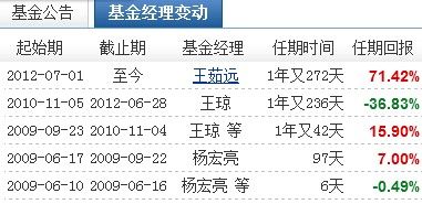 这款鸡从2012年第三季度就开始变好,排名竟然从第二季度垫底的177直接上升到第四位,三儿看了这么多基金,这种情况真心是少之又少,那么我们来看看王经理的上任时间: