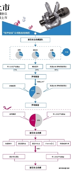 田明:星空传媒是一个境外媒体,我们规划今年年底或是明年年初在香港上市。我们在今年年初跟默多克的新闻集团达成了协议,华人文化产业基金和星空的团队出资收购默多克持有的星空传媒股份,做一个MBO(管理层收购)。做一个MBO就需要购买的资金,我们团队需要融资。所以我们就采用了稀释梦响强音股权进行融资的方式。