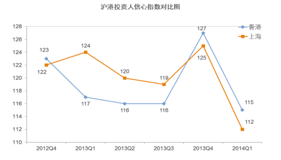 报告显示,本期上投摩根投资风向标情绪指数为120点,较上期下降3个百分点,显示投资人对股市投资均持相对谨慎态度,但报告中投资人对个人资产升值情绪指标仍保持高位。其中,调研区域中上海投资人信心指数较上季度有所下降,从125点回落至112点。查看香港“摩根投资者信心指数”,同样从上季度的127点下跌至115点,回落至2013年上半年的水平;不过,相比香港市场,调查样本相当比例的香港投资人认为A股市场更具增长潜力,因而对A股市场更感兴趣。