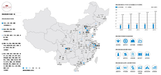 洲际最近发布的2013年财报显示,中国已经是洲际全球仅次于美国的第二大市场。在大中华地区开业的酒店总数已经达到了208家,分布于80多个城市。预计到2025年,中国将超过美国成为其全球最大的市场。