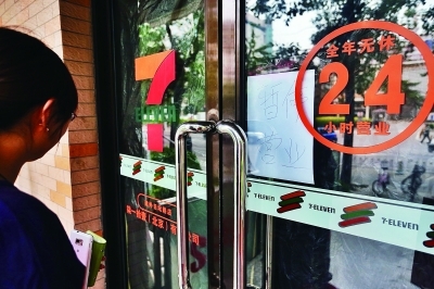 ▲今天上午11时许,7-ELEVEn建外日坛路店已经关门暂停营业 摄/法制晚报记者 洪煜