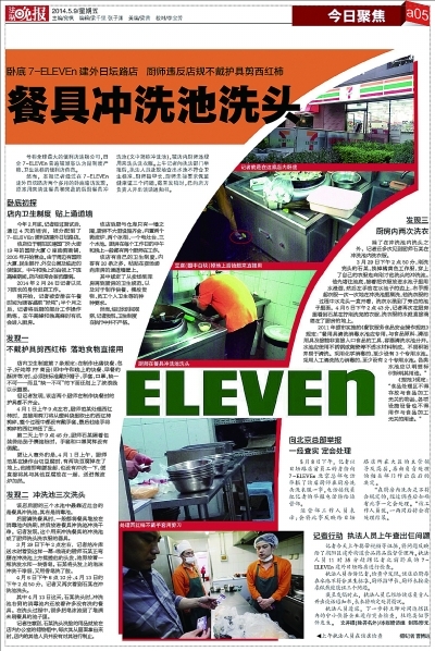 《法制晚报》记者从今年2月底,开始在7-ELEVEn建外日坛路店进行卧底采访。经过两个月的调查,记者发现该店存在员工在店内餐具冲洗池内洗头、在后厨洗衣服、将掉落地面的豆腐捡起来直接使用等问题。本报于昨天对此事进行了报道,并向食药监局进行了举报。