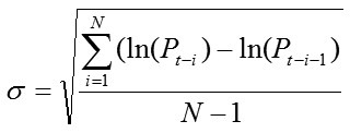 历史波动率是标的资产价格在最近一段时间内价格变化的标准差,即:
