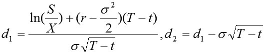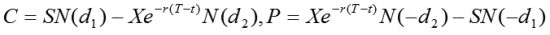其中S为标的资产价格,X为交割价格,r为无风险利率,T为到期时间,σ是波动率,C是看涨期权,P是看跌期权。