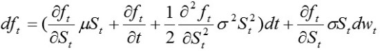基于标的资产St 的衍生品的价格为ft ,那么,其价格变动可以表示为: