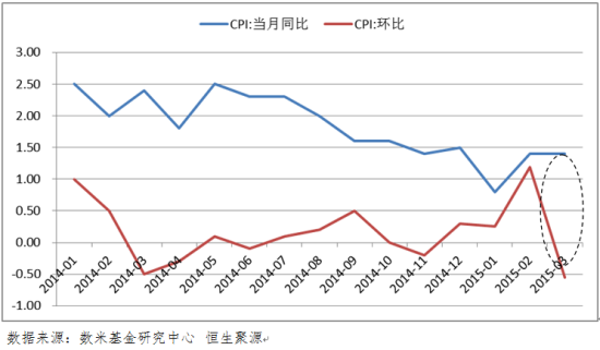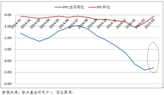 宏观经济简析:3月CPI同比上涨1.4%,与2月份相同,其中食品同比增长2.3%,非食品同比增长0.9%,均保持稳定。而3月CPI环比下降0.5%,主因春节假期因素带来的影响逐渐消失,食品价格大幅回落,服务价格涨跌互现。3月PPI同比下降4.6%,降幅缩窄。3月PPI同比降幅缩窄至4.6%,PPI环比跌幅缩窄至-0.1%,源于3月油气等生产资料价格上涨,但工业品通缩仍在持续。