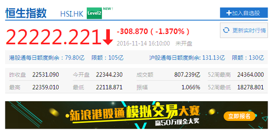 恒生君卖萌报收22222.22点 A股更有十大奇葩收盘