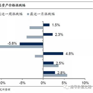上周各大类资产价格整体出现了一定程度的修复,其中股票市场有所回暖,债券市场价格同样上涨,商品市场中工业品价格和农产品价格双双收涨,黄金价格环比同样走强。具体来看,股票市场中,沪深300指数单周上涨1.5%,创业板指单周上行2.3%。债券市场中,十年国债到期收益率环比下降5.6bp。商品市场中南华工业品指数大幅上涨4.8%,南华农业品指数涨2.5%。黄金价格环比上涨2.8%。上周上证综指环比涨1.2%,国信价值指数单周涨1.9%。
