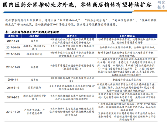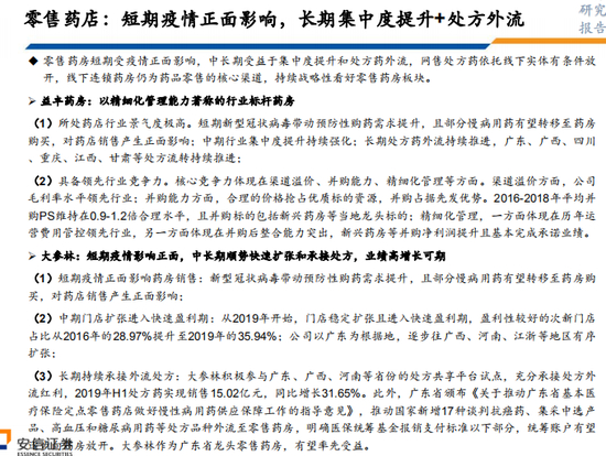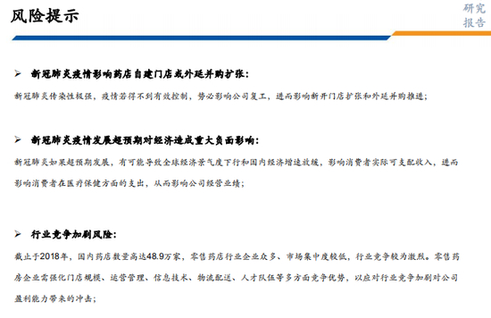 风险提示:新冠肺炎疫情影响药店自建门店或外延并购扩张、新冠肺炎疫情发展超预期对经济造成重大负面影响、行业竞争加剧风险、处方药外流不达预期风险、药品降价大于预期风险。