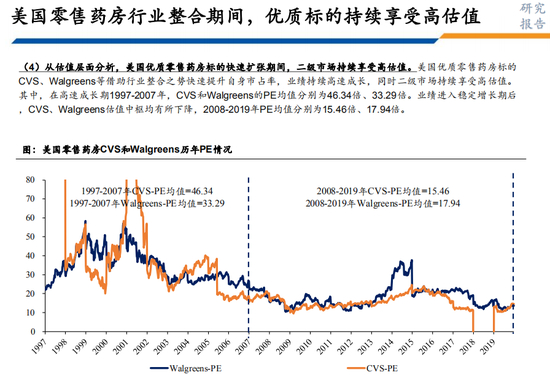原标题 借鉴美国经验,分析药店高速成长期的估值水平和网上药店的影响