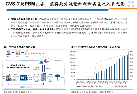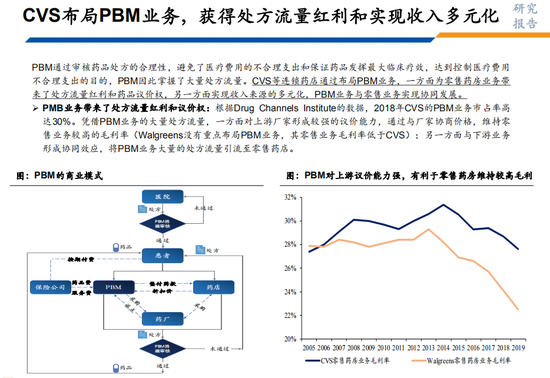 (1)处方流量优势:CVS等连锁药店通过布局PBM业务,一方面实现收入来源的多元化,另一方面巩固了零售药房业务的处方流量优势;