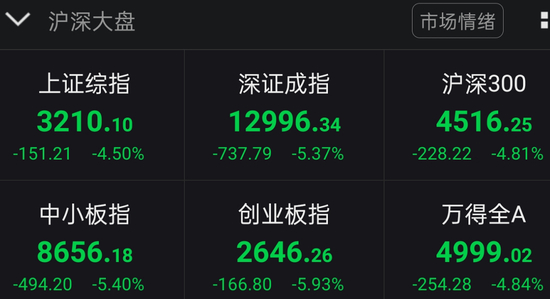 7月16日,A股全天上演“一泻千里”的走势,午后资金抛售加剧,各大指数急速杀跌,沪指失守3300点,直逼3200点,两市跌停股数量不断增加。截止收盘,沪指大跌4.5%,创业板指数跌幅逼近6%,沪深两市仅有200多只个股收红。
