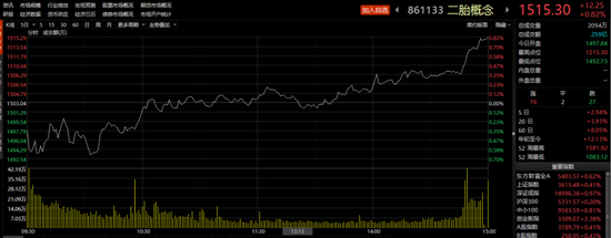 A股二胎概念今日低开,盘中高走,尾盘明显“飙涨”,最后收涨0.82%,76只相关概念股收涨。