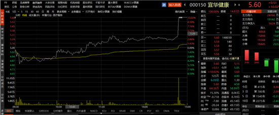 其中,养老概念股宜华健康尾盘涨停,收报5.6元/股。