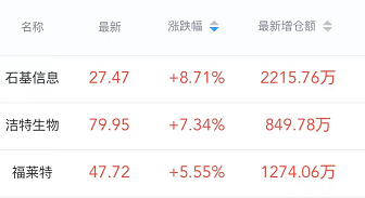 11月17日消息,截止收盘,北向掘金精选股池提示的石基信息,大涨8.71%!