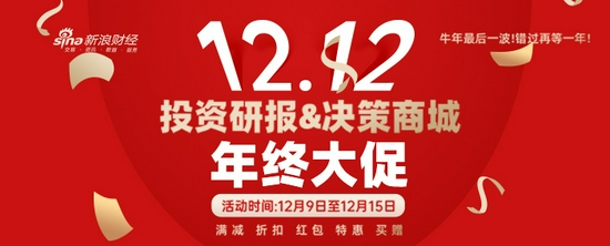 12月9日至12月15日,新浪财经APP投资研报&决策商城12.12年终大促活动进行中。满减、折扣、无门槛红包、特惠、买赠,股民五大福利,一触即“发”!牛年最后一波!错过再等一年!>>查看详情