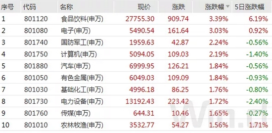 从12月8日板块涨跌幅来看,市场呈现普涨态势,其中食品饮料、电子、国防军工、计算机等板块涨幅居前,特别是食品饮料板块5日涨幅达6.19%,成为近期市场领涨龙头。