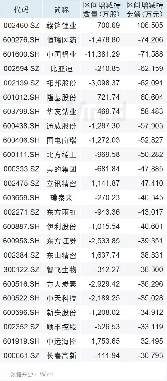 虽然北上资金本月整体买入,但部分公司依旧大幅卖出。有24家公司净卖出金额超3亿元,赣锋锂业被卖出超10亿元,位居首位,此外,恒瑞医药、中国铝业、比亚迪、拓邦股份、隆基股份、华友钴业、通威股份、国电南瑞、北方稀土卖出金额亦过5亿元。