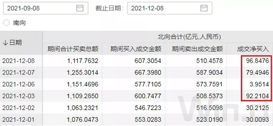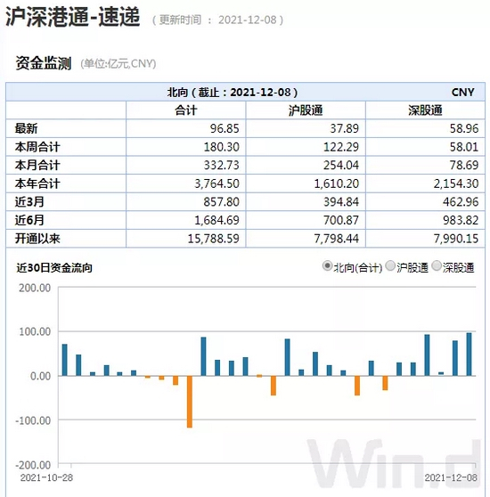 12月8日,北上资金净流入96.85亿元,本周净流入180.30亿元。从近期北上资金变动趋势来看,降准落地后,政策预期也更加明朗,买入力度大幅增强。